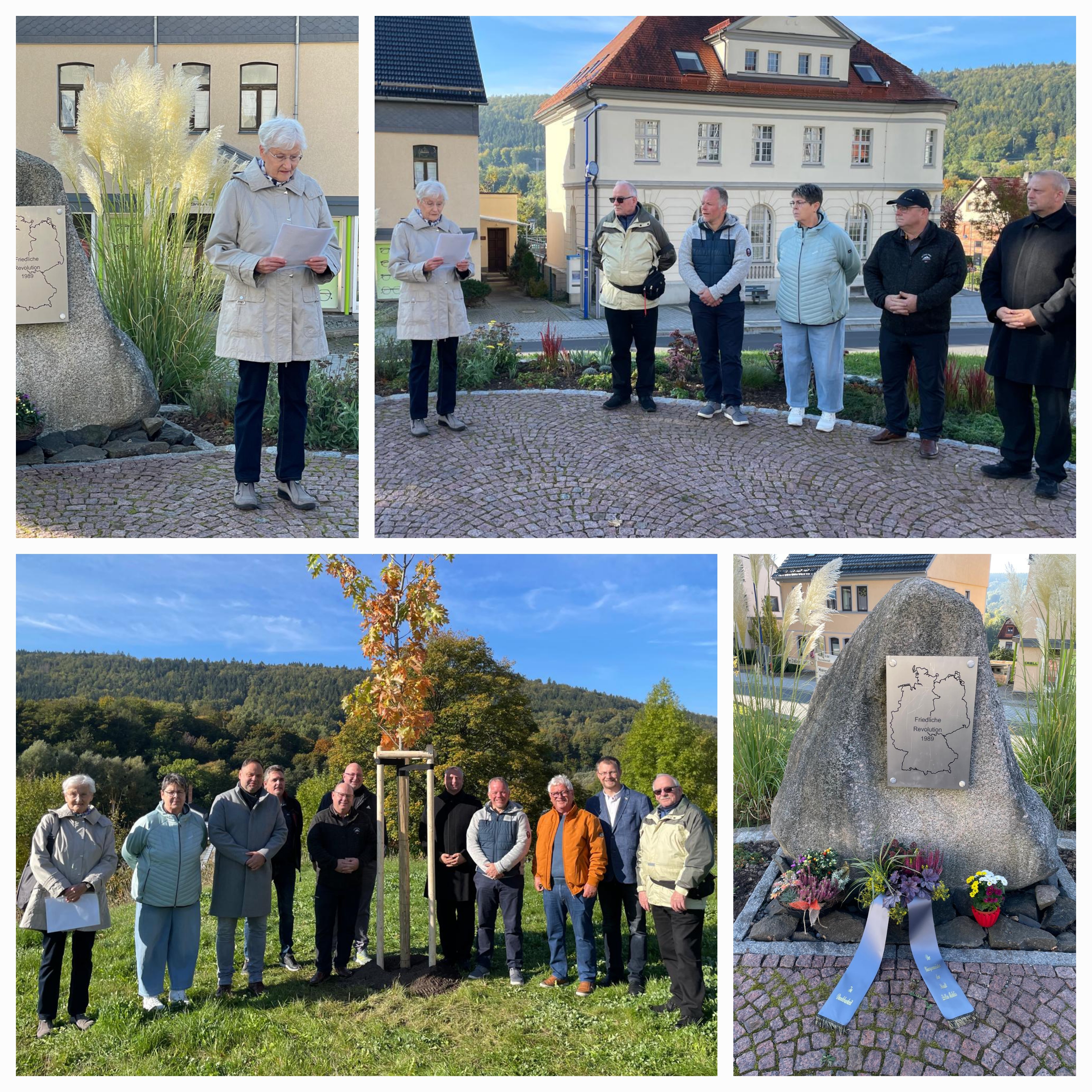 Am heutigen Tag der Deutschen Einheit haben wir traditionell der Wiedervereinigung gedacht. Die Rede hielt dieses Mal Frau Holland-Cunz, die von den Ereignissen der Wendejahre sprach, persönliche Eindrücke vermittelte und durchaus kritisch auf die aktuellen politischen Entwicklungen blickte. Wir danken ihr sehr für diese nachdenklichen Worte! Anschließend ging es noch zur mit Spenden unserer Mitglieder und Freunde gestifteten Roteiche, die wir bald offiziell an die Stadt Zella-Mehlis bzw. dem Bürgermeister Torsten Widder übergeben werden!